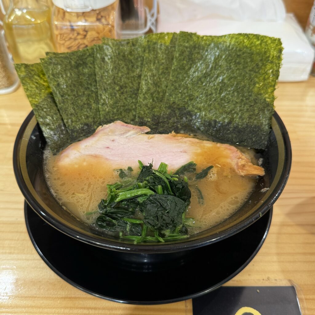 市ヶ谷にできた家系ラーメン屋「てつ家」のラーメンです。